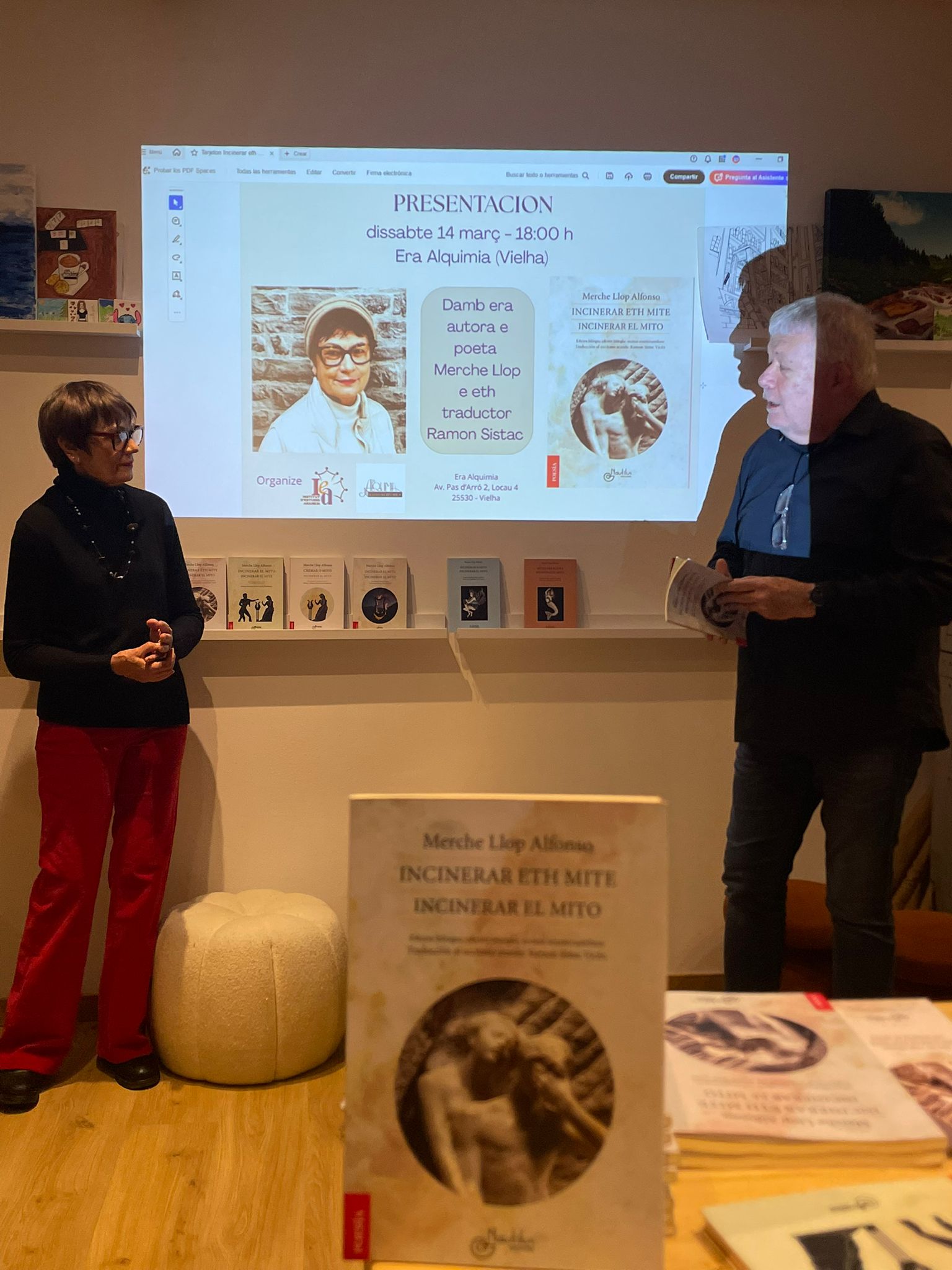 Eth passat dissabte 14 de març, Merche Llop presentec eth sòn poemari «Incinerar eth Mite», tradusit ar aranés peth membre dera Acadèmia, Ramon Sistac.
